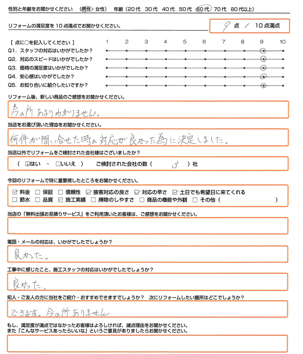 Q. 当店の「無料出張お見積りサービス」をご利用頂いたお客様は、ご感想をお聞かせください