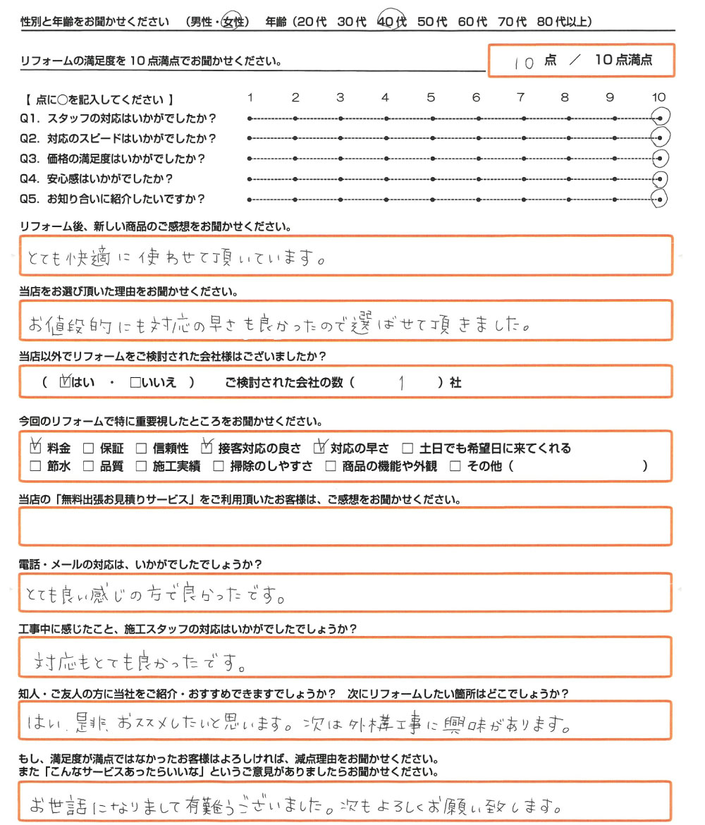 Q. 知人・ご友人の方に当社をご紹介・おすすめできますでしょうか?次にリフォームしたい箇所はどこでしょうか?