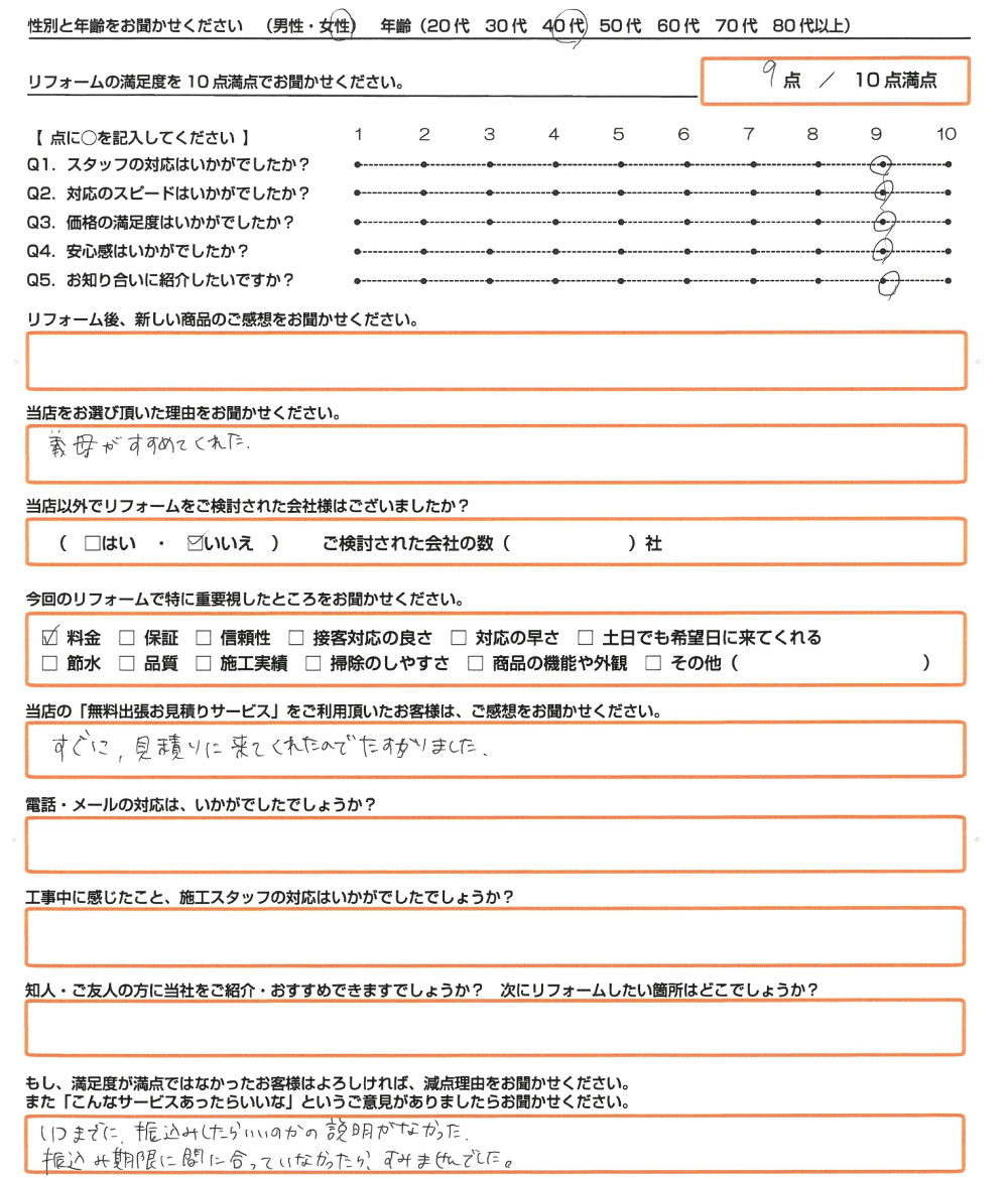 Q. 当店の「無料出張お見積りサービス」をご利用頂いたお客様は、ご感想をお聞かせください